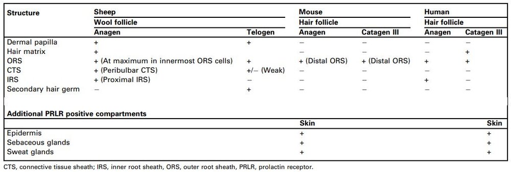 I agree with you that autocrine/paracrine PRL has much more effect on the hair follicle than endocrine prolactin, but I don't think endocrine prolactin is closed off from HF cells. Look at hyperprolactinemia where scalp hair gets decimated. Either pituitary PRL is having a direct effect on the cells, or intrafollicular PRL is upregulated by serum PRL through the immune system, or upregulated by the same promoter as pituitary PRL. PRL research is still in its infancy, but it appears to me that all three of these are true.