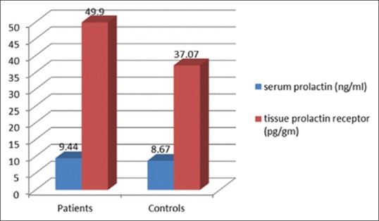 This study found a role for PRLR in the pathogenesis of alopecia areata, independent of serum prolactin. Two additional studies found similar results, but two others found significantly increased serum prolactin levels in patients with AA. They all found a role for prolactin signaling in AA. From this study, "a significant positive correlation was found between the prolactin receptor and the SALT[severity of alopecia] score".