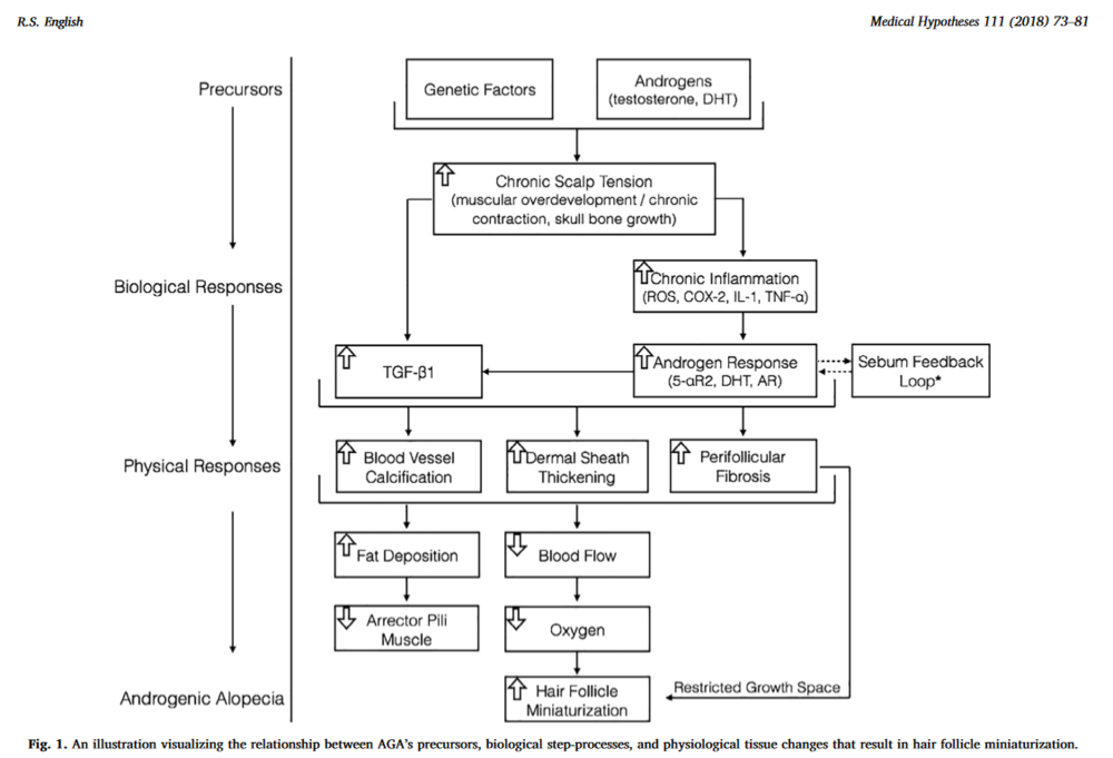 A hypothetical pathogenesis model for androgenic alopecia: clarifying thedihydrotestosterone paradox and rate-limiting recovery factors
