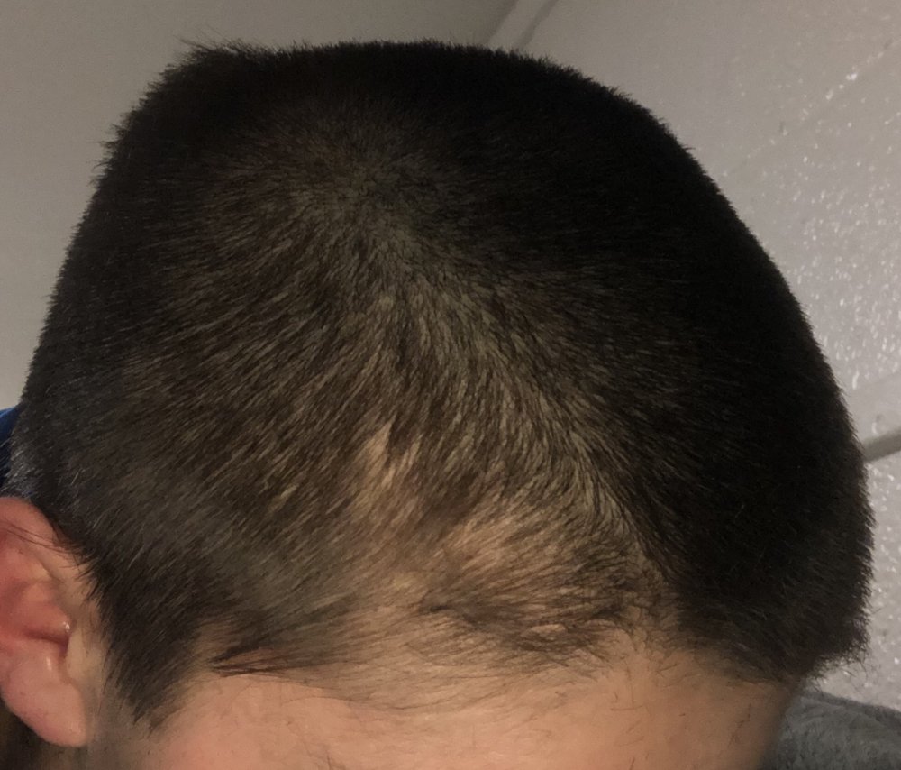 View attachment 138706 View attachment 138707 View attachment 138708 View attachment 138709 View attachment 138710 View attachment 138711 View attachment 138712 Got a buzz cut to see where I was at. Unfortunately there’s some very clear thinning occurring on the crown and the temples. I don’t think anything can make it grow back excluding estrogen, but I have some semblance of hope that oral minoxidil will at least thicken it up a bit once the shed stops.