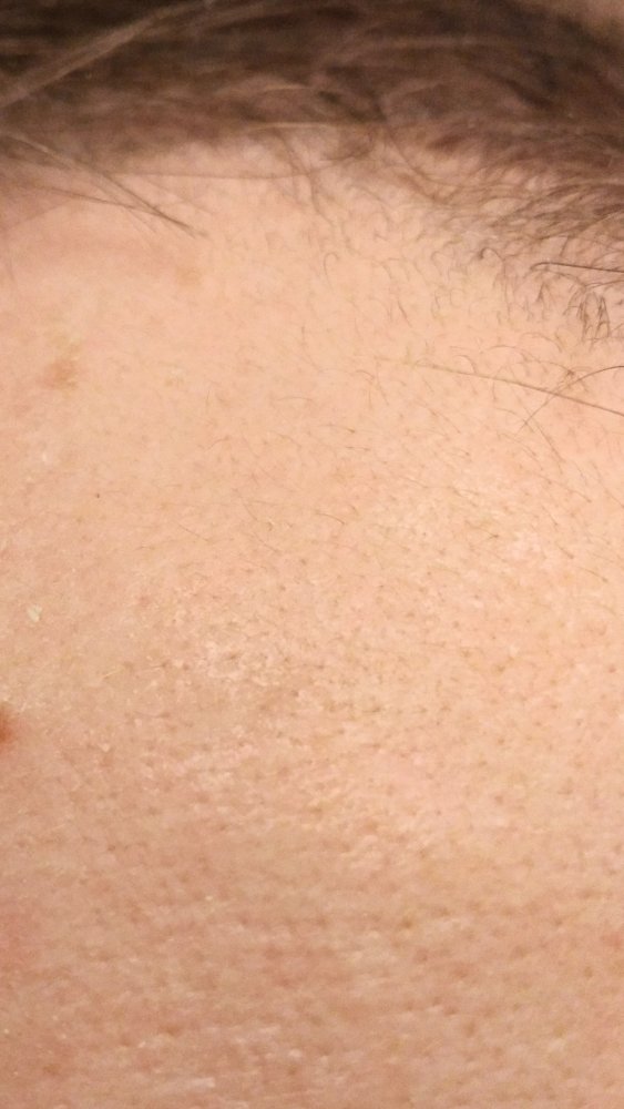 Anyway, I felt more comfortable and started taking 50mg cypro Everyday on July 5th. Also started minoxidil 2x a day every other day, and estrogel Every Other day. My temples started filling with more fuzzy hairs. I could clearly see them in certain light but when i tried to take pictures even in the same light, my camera couldn't see them. I tried many times. The fuzzies become slowly easier to see, finally about 3 weeks later I was able to capture my fuzzy vellus on camera.