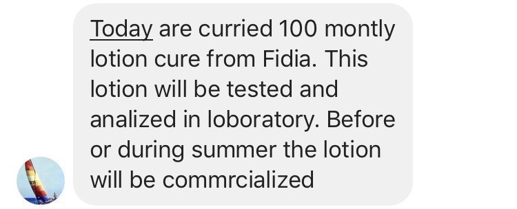 Uhm, it doesn't have to do with the hype that we've created. If I for example write a message to follicum I can tell you that I will get a reply. I understand if a company doesn't have all the answers ready to share with the public but can we at least get some sort of an update since Brotzu has said the the lotion works and that we've known for quite a while that Fidia owns the right to the product.