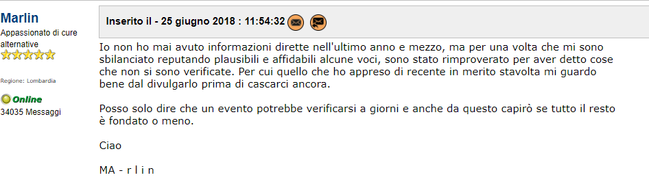 Marlin is not sure about his indirect source so he's waiting for something to happen in a couple of days to prove him something and then he'll maybe say something