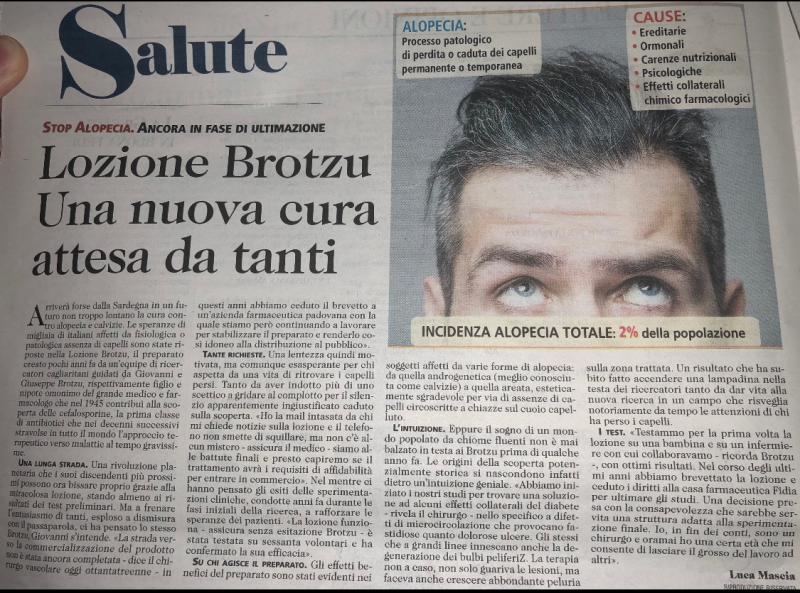 Perhaps the cure against alopecia and baldness will come from Sardinia in the not too distant future. The hopes of thousands of Italians suffering from physiological or pathological lack of hair were placed in the "Brotzu Lotion", the preparation created a few years ago by a team of researchers from Cagliari led by Giovanni and Giuseppe Brotzu, respectively the son and grandchild of the great name doctor and pharmacologist who in 1945 contributed to the discovery of cephalosporins, the first class of antibiotics that in the following decades upset the therapeutic approach to diseases at the worst time in the world.