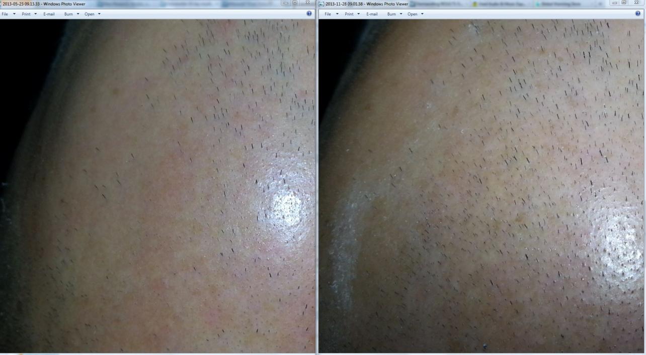 i have to report i bleed even easier. i call my 8th roll a success cause after whiping and cleaning it it turned reddish as if you get punched so this clearly says that stems are being released all over.hairline commes in strong crown closes slowly the rest hair doesnt shed and is thicker . i am slightly reducing minoxidil per dosage as of tomorrow this time.