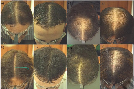 You are missunderstanding the photos . A people that is balding , a norwood 2 or 3 will look exacly ñike that if they do a hairstile like that . Even propecia tale also that kind of photos . It was already more than proove that pdg2 levels is actually what cause balding, DHT just start Telogen Effluvium chascade that end it up qoth that high levels . Anythin than can lower pdg2 without lowering good prostaglandis, will stop the advance of male pattern baldness .
