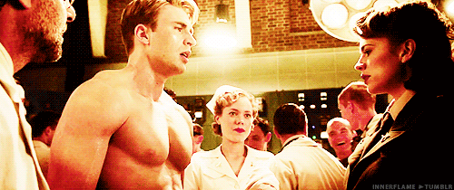 Those stories are also power fantasies at their core. Captain America becomes "peak human" when he takes a serum -- why do you think that might be popular? The first thing that happens to him when he walks out of his tube is that the magnificent Peggy Carter (played by Hayley Atwell) admires his muscles.