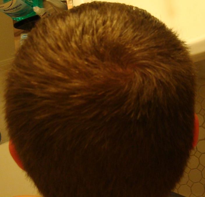 Just because that 3rd one looks pretty thin, here is one with my hair dry and the camera angled up right at my hair line. This was my "bad spot":