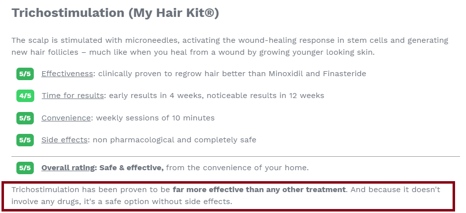 "Trichostimulation has been proven to be far more effective than any other treatment. And because it doesn't involve any drugs, it's a safe option without side effects."