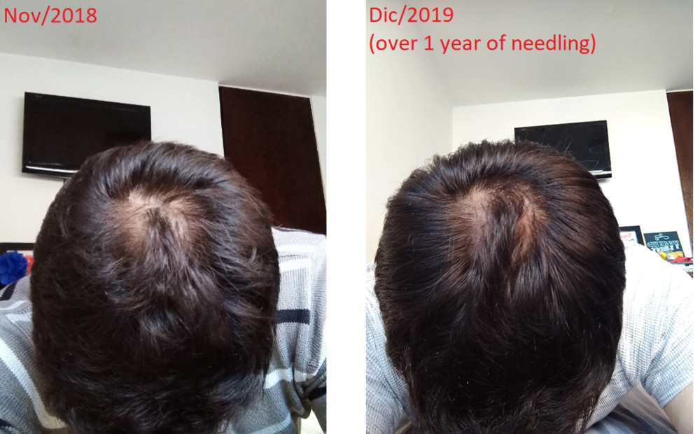 -Startled microneedling in November 2018 (a year and a month ago). In August of this year, I saw no apparent progress by comparing pics in my crown (my worst hit area, temples and hairline are relatively well), so I said f*** it, I will test another regime.