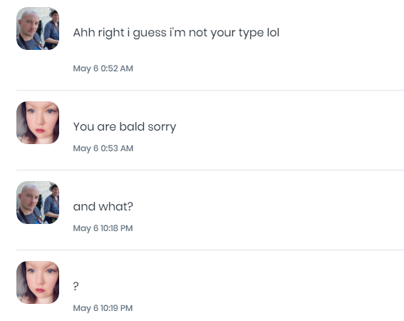 I think you kinda upset some of them though. I recommend not doing that. The first one should've just ghosted you instead of just saying "you are bald sorry." That was kinda rude.