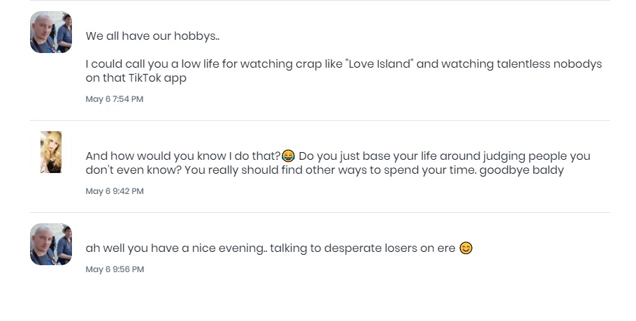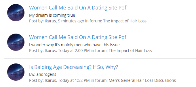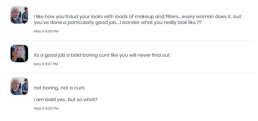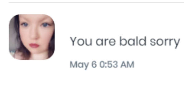 Here are a few of the recent examples of women calling me bald to insult me on the popular dating site Plentyoffish. I always send a nice friendly introduction message to every woman on that site... 99% blatantly ignore me, however, will sometimes send a follow up if I see they've seen my profile.