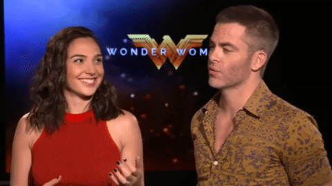 Here's a famous pic of 9+/10 model Gal Gadot smiling at Chris Pine and admiring how handsome he is. After a few seconds, she realizes that she's on camera, she bites her lip and looks away in embarrassment. This gif was mostly made famous by women, by the way, as it made women all over the world relate to Gal Gadot. If anything that helped Wonder Woman's gross.